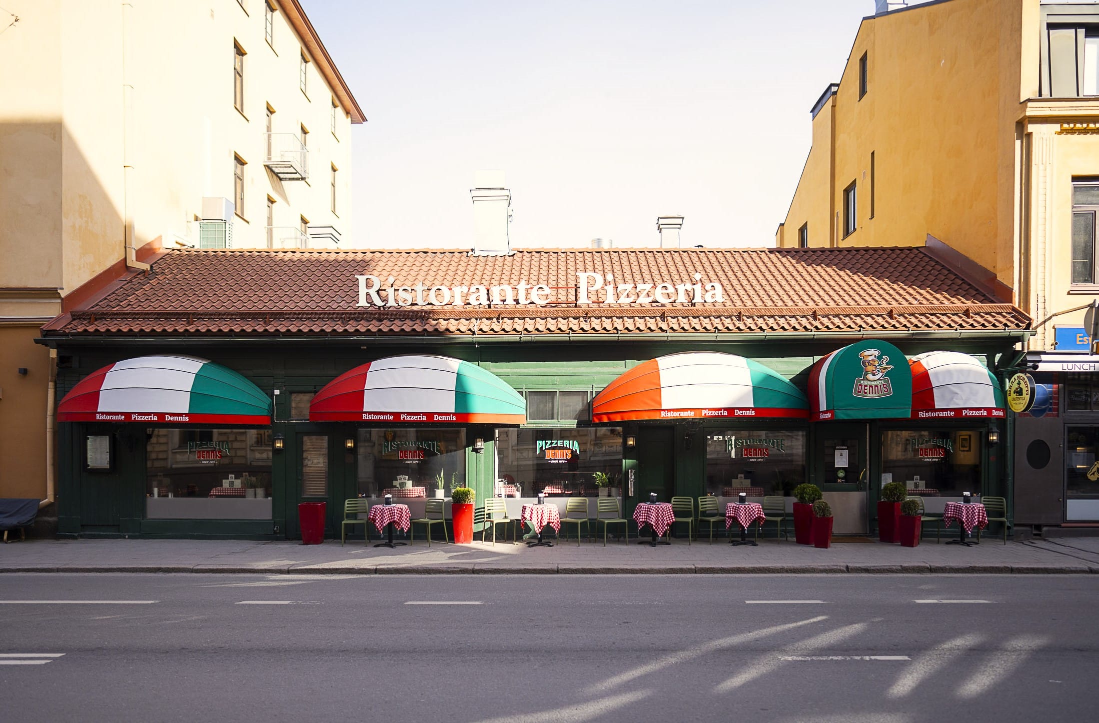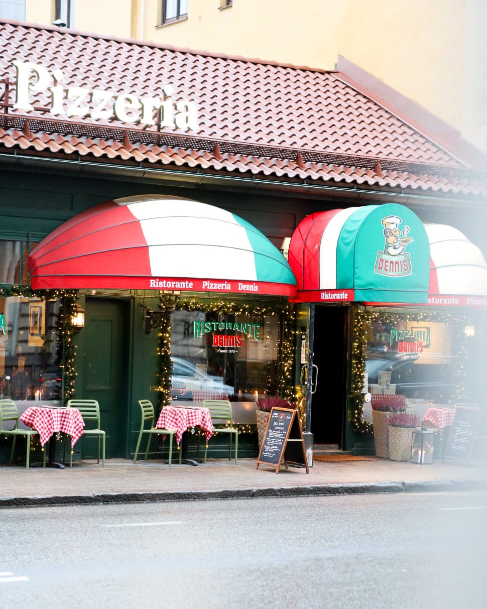 Kun vuonna 2023 Pizzeria Dennis palasi juurilleen alkuperäiseen osoitteeseensa, oli itsestään selvää, että myös julkisivun tuli huokua ravintolan legendaarista historiaa. Meillä oli kunnia toteuttaa kohteeseen uniikit liikemarkiisit, jotka noudattavat tarkasti sitä perinteistä ilmettä, josta Dennis on vuosikymmenten saatossa tunnettu.