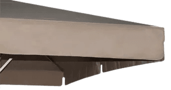 Helma on hyvä valinta, jos varjoon halutaan lisätä sadevesikourut, sivuverhot tai oma logo.