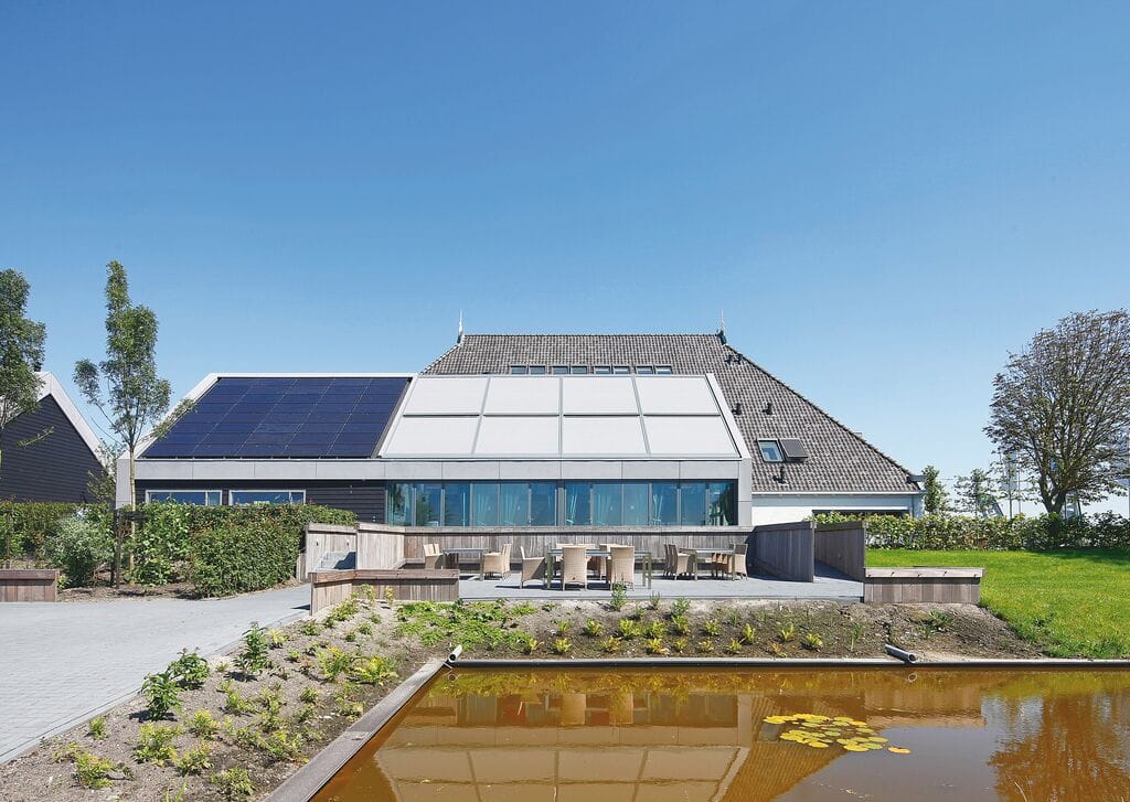 aurinkoenergialla toimiva screeni ilman sähkövetoja. Integroitu paneeli lataa akun moottorin käyttöä varten. Täydellinen valinta olemassa olevien lasikattojen jälkiasennukseen. Ympäristöystävällinen ja täysin omavarainen toteutus.